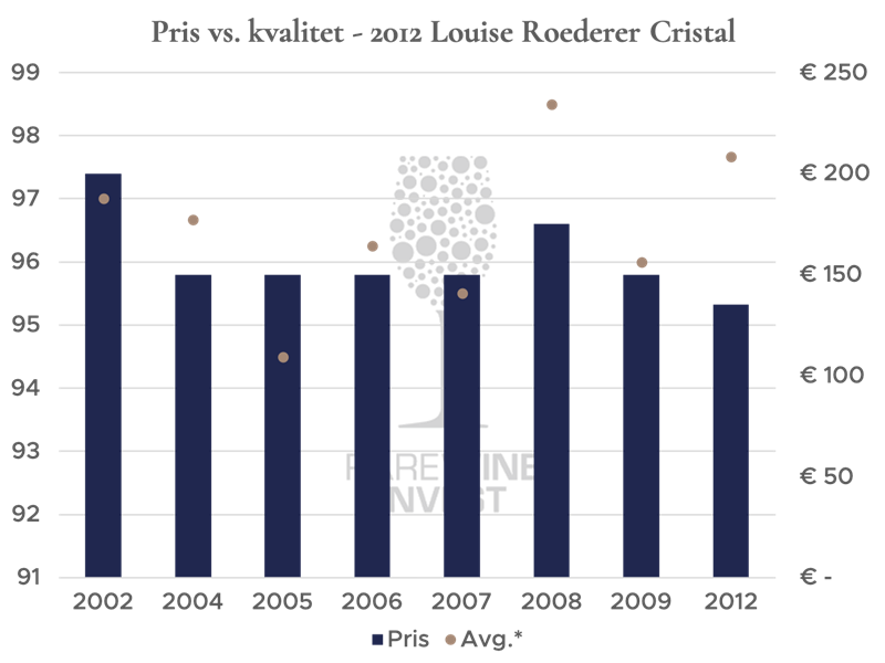 Som det ses i tabellen, har Richard Juhlin der har champagne som speciale, endnu ikke afgivet point. Med dette som speciale må det forventes at han er en anelse mere kritisk og kræsen end sine kollegaer, hvilket også ses på de foregående årgange. Bruges de tre øvrige pointgivninger som rettesnor og forventes der udfra dette udgangspunkt en konservativ pointgivning fra Juhlin, kan der roligt argumenteres for, at Louis Roederer har fået det optimale ud af deres 2012 Cristal og leveret en særdeles attraktiv champagne. Sammenholdes pris og kvalitet synes årgang 2012 kun endnu mere attraktiv i et investeringsmæssigt perspektiv: